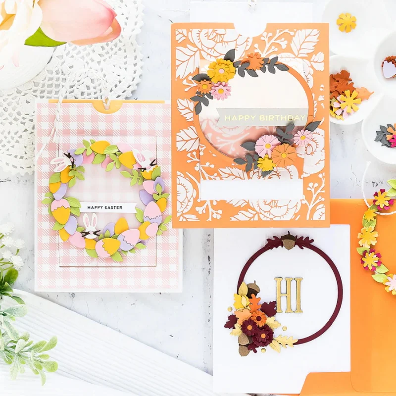 Related Products Pop Up Festive Wreath Slider Card Metal Cutting Dies For DIY Scrarpbooking Embossing Paper Cards De